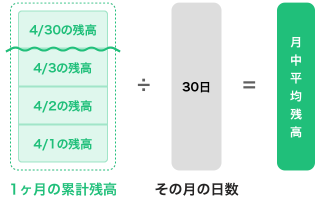 23時59分時点で口座にあるお金を1ヶ月分毎日足し算して、その月の日数で割り算したものです。